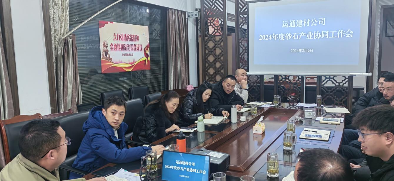 按照集團公司2024年工作部署,建材公司董事長李波組織召開2024年度砂石產業(yè)協(xié)同工作會,集團目標管理部負責人以及建材、丹石、云石、興寶公司班子成員、銷售部門負責人參加會議。會議就2024年度重點工作任務、市場拓展方向、產業(yè)協(xié)同等方面進行深入研討。