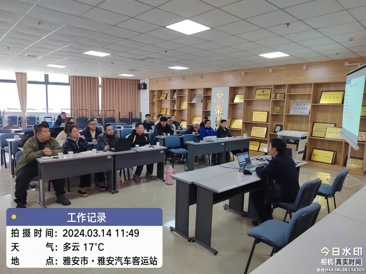 為進(jìn)一步規(guī)范營(yíng)運(yùn)車輛動(dòng)態(tài)監(jiān)控管理,提高動(dòng)態(tài)監(jiān)控人員安全責(zé)任意識(shí)和綜合監(jiān)管能力,結(jié)合雅安市安全生產(chǎn)治本攻堅(jiān)三年行動(dòng)要求,2024年3月14日,蜀通公司特邀成都網(wǎng)闊公司技術(shù)工程師,對(duì)我司18名專職車輛動(dòng)態(tài)監(jiān)控管理人員進(jìn)行業(yè)務(wù)培訓(xùn)。