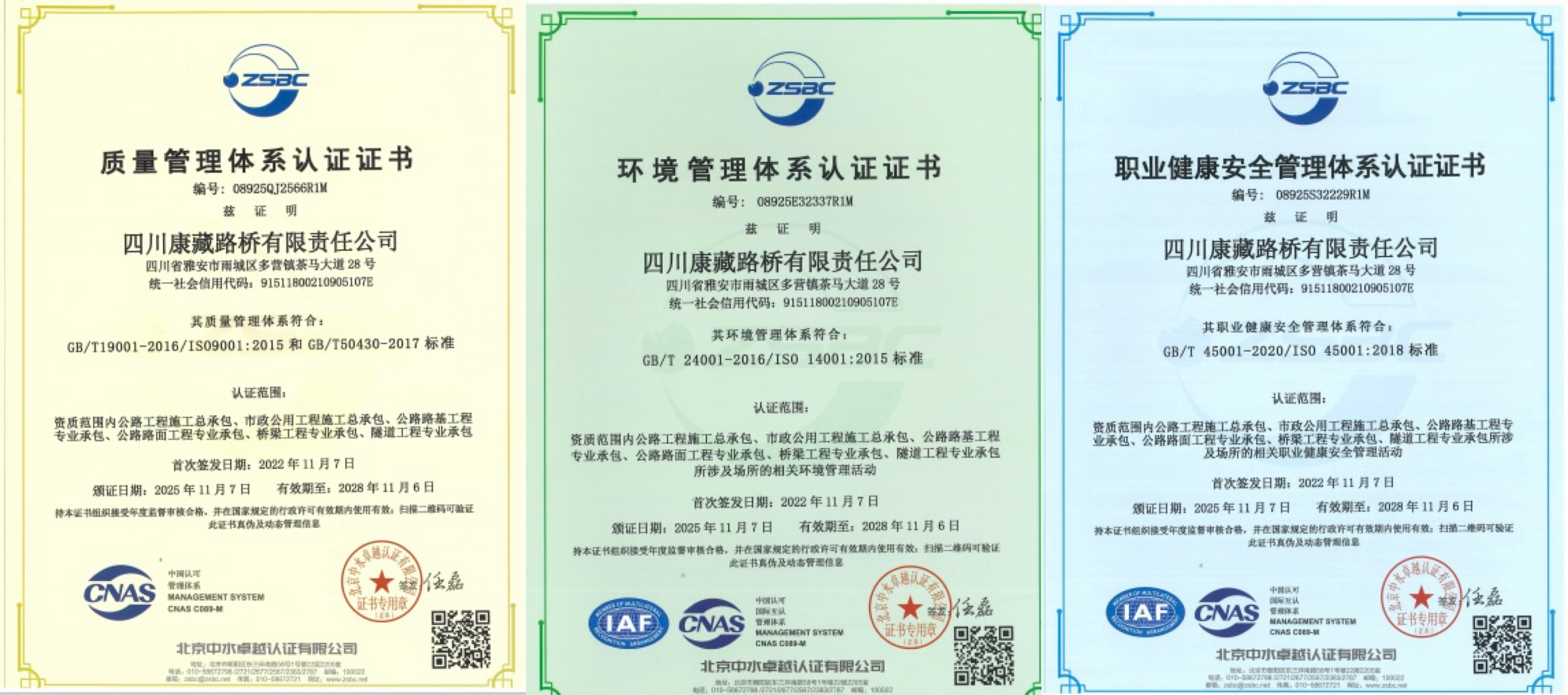 近日,康藏路橋公司順利通過質(zhì)量管理體系、環(huán)境管理體系及職業(yè)健康安全管理體系評(píng)審,并成功獲得相應(yīng)認(rèn)證證書。