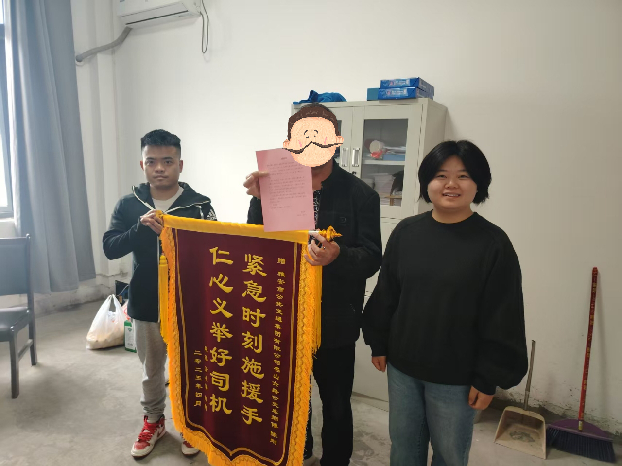 4月10日,市民高先生專程來(lái)到雅安公交集團(tuán),將一面寫(xiě)有“緊急時(shí)刻伸援手,仁心義舉好司機(jī)”的錦旗送到公交公司工作人員手中,向危急關(guān)頭及時(shí)伸出援手的6路公交車駕駛員陳剛師傅表示感謝。