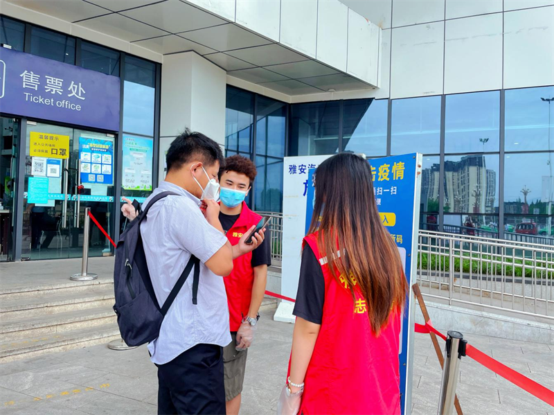 青年志愿者們嚴(yán)格遵守雅安市汽車客運(yùn)站站長葛舉康為大家講解的疫情防控工作要求,積極投身志愿服務(wù),分別在雅安市火車站進(jìn)出站口、雅安市汽車客運(yùn)站進(jìn)站口、售票大廳、候車廳等點(diǎn)位駐守,勸導(dǎo)旅客戴好口罩、查驗(yàn)場所碼、行程碼及核酸報(bào)告,并向乘客宣傳疫情防控知識(shí),時(shí)刻提醒旅客保持安全距離,認(rèn)真維護(hù)現(xiàn)場秩序。