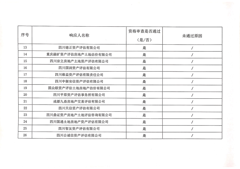 雅安交通建設(shè)(集團(tuán))有限責(zé)任公司資產(chǎn)評(píng)估服務(wù)企業(yè)入庫比選結(jié)果