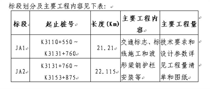 2.2招標(biāo)范圍:本次招標(biāo)范圍為國(guó)道351線磽磧至夾金山路面改造工程公路安全設(shè)施施工標(biāo)段招標(biāo),工程內(nèi)容包括:全線交通標(biāo)志、交通標(biāo)線、里程碑、百米樁、公路界碑施工和波形梁鋼護(hù)欄安裝等。