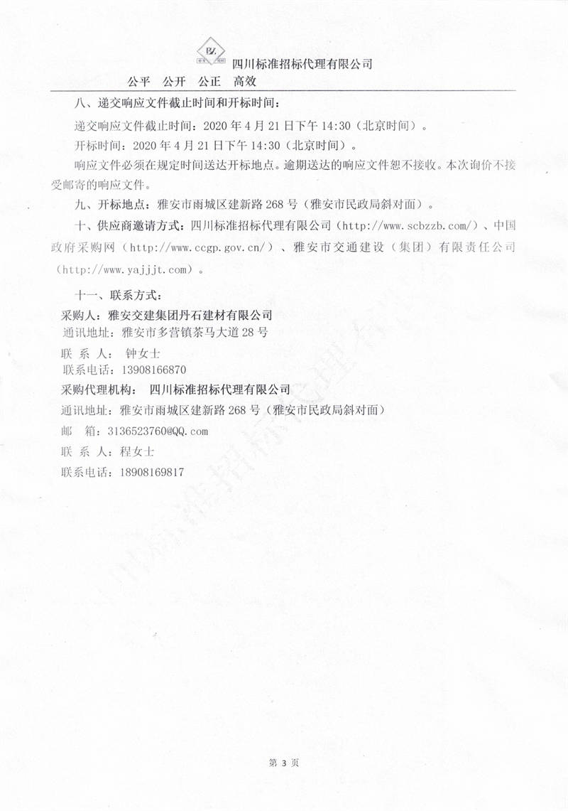 雅安交建集團丹石建材有限公司成雅快速通道一標段砂石運輸服務項目詢價公告