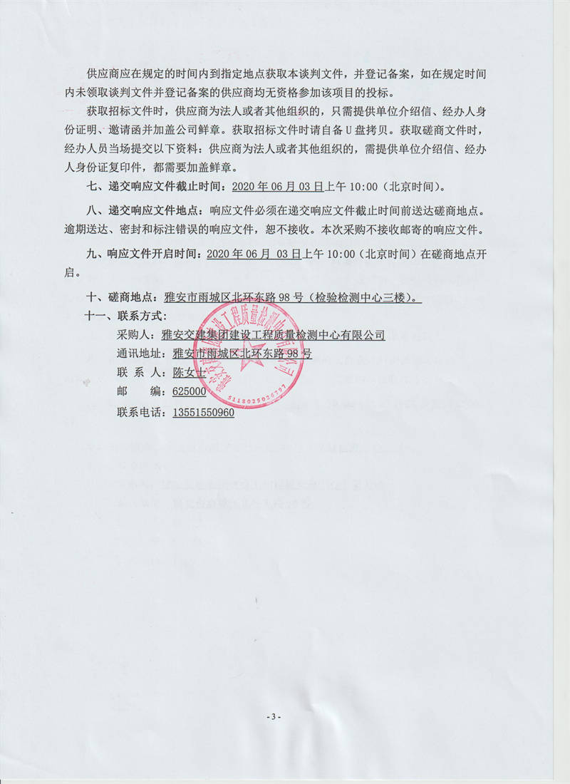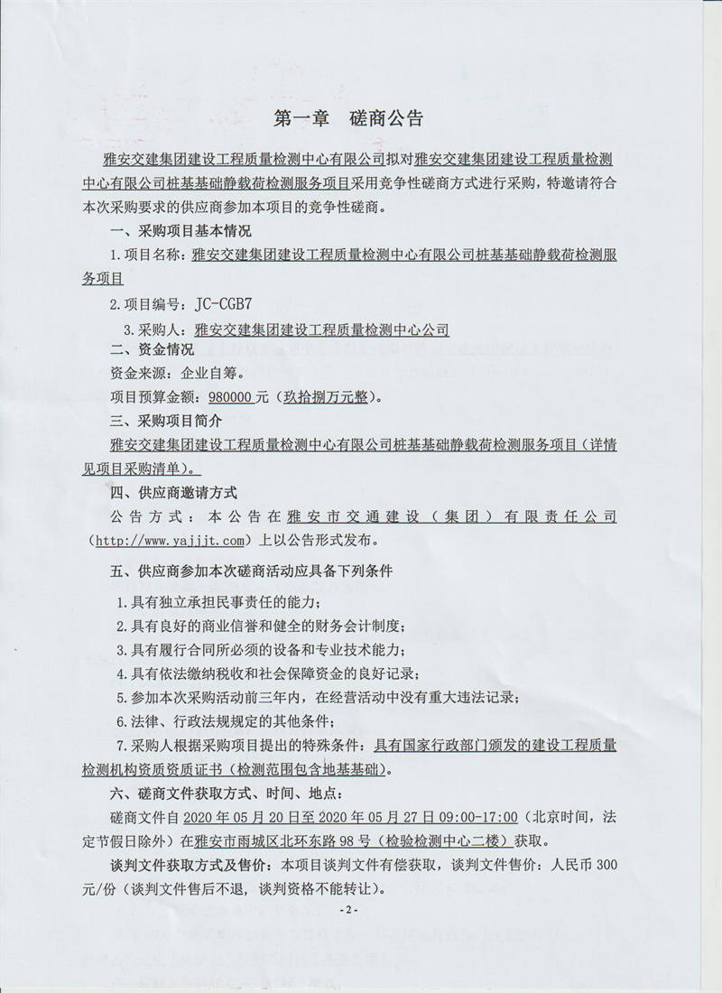 雅安交建集團建設工程質量檢測中心有限公司樁基基礎靜載荷檢測服務采購項目競爭性磋商公告