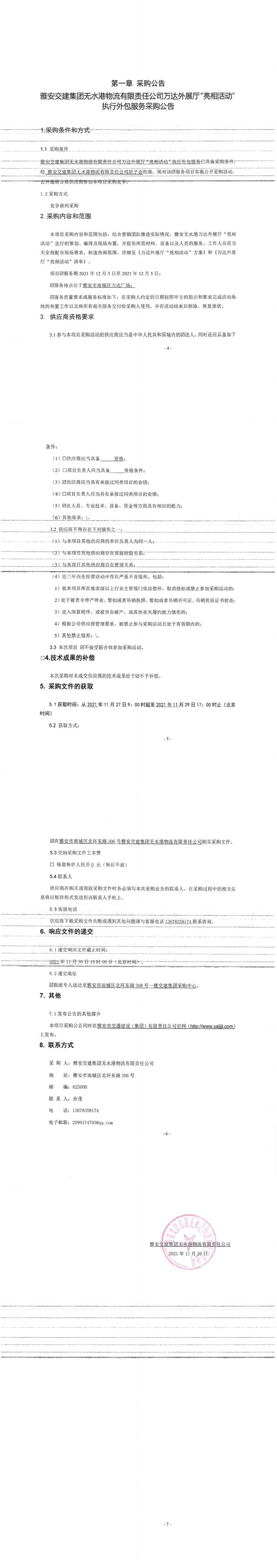 雅安交建集團(tuán)無水港物流有限責(zé)任公司萬達(dá)外展廳“亮相活動”執(zhí)行外包服務(wù)采購公告