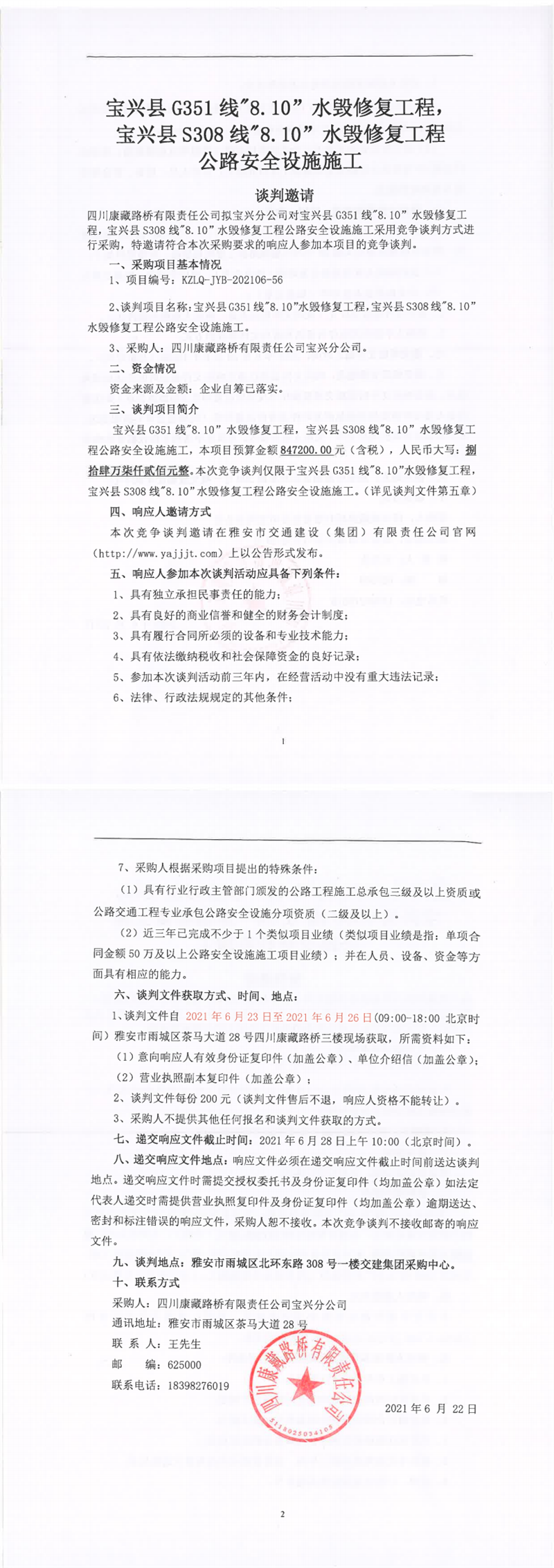 寶興縣G351線(xiàn)“8.10”水毀修復(fù)工程,寶興縣S308線(xiàn)“8.10”水毀修復(fù)工程公路安全設(shè)施施工競(jìng)爭(zhēng)談判公告