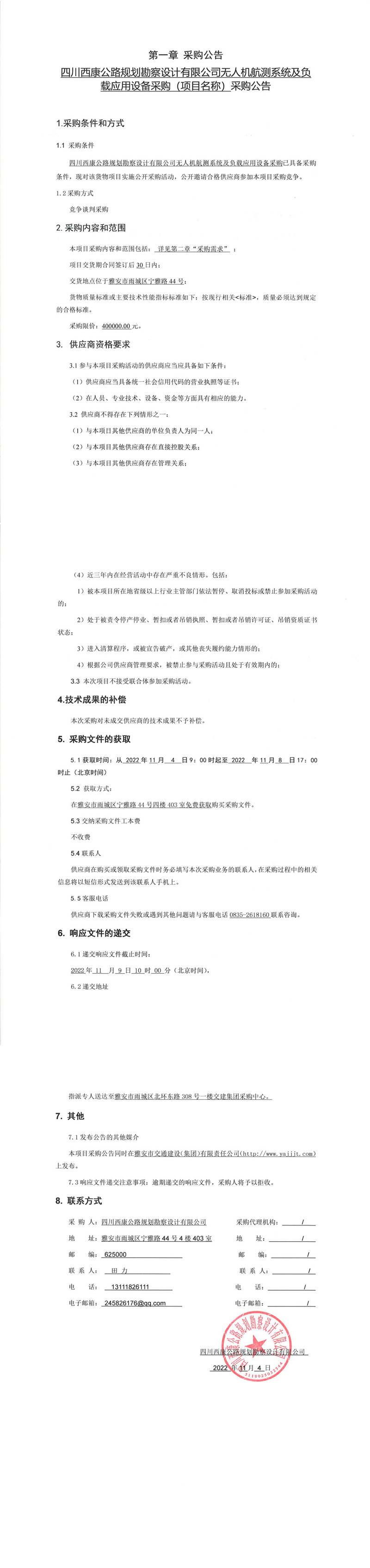 四川西康公路規(guī)劃勘察設(shè)計(jì)有限公司無人機(jī)航測(cè)系統(tǒng)及負(fù)載應(yīng)用設(shè)備采購(項(xiàng)目名稱)采購公告