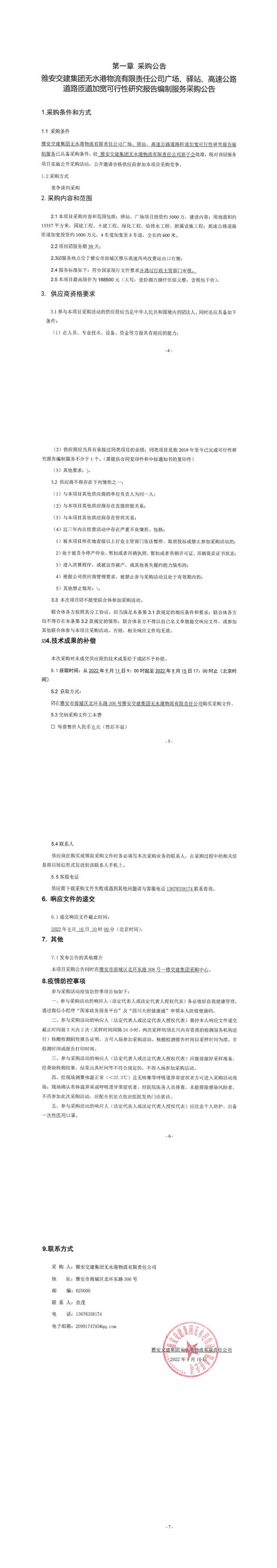 雅安交建集團(tuán)無水港物流有限責(zé)任公司廣場、驛站、高速公路道路匝道加寬可行性研究報告編制服務(wù)采購公告