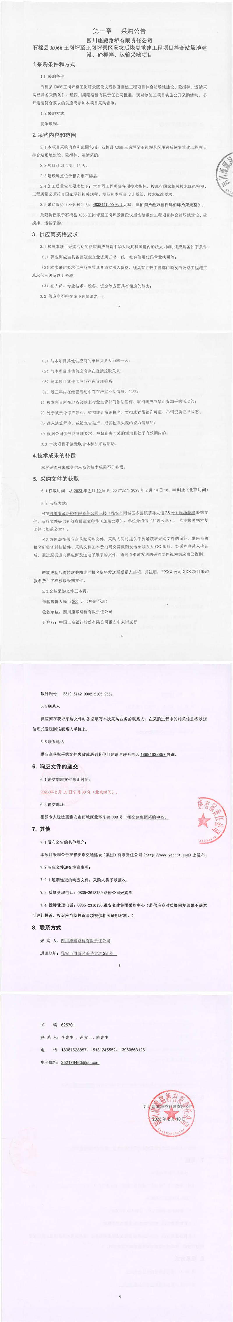 四川康藏路橋有限責(zé)任公司石棉縣X066王崗坪至王崗坪景區(qū)段災(zāi)后恢復(fù)重建工程項(xiàng)目拌合站場(chǎng)地建設(shè)、砼攪拌、運(yùn)輸采購(gòu)項(xiàng)目采購(gòu)公告