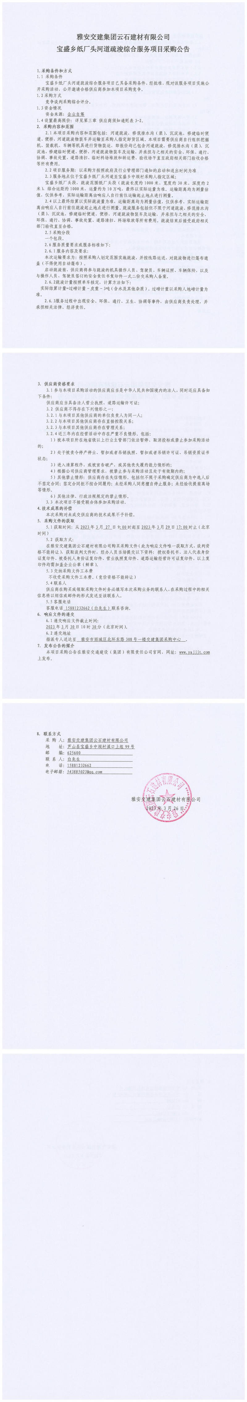 雅安交建集團(tuán)云石建材有限公司太平鎮(zhèn)祥和村河道疏浚綜合服務(wù)項(xiàng)目采購公告