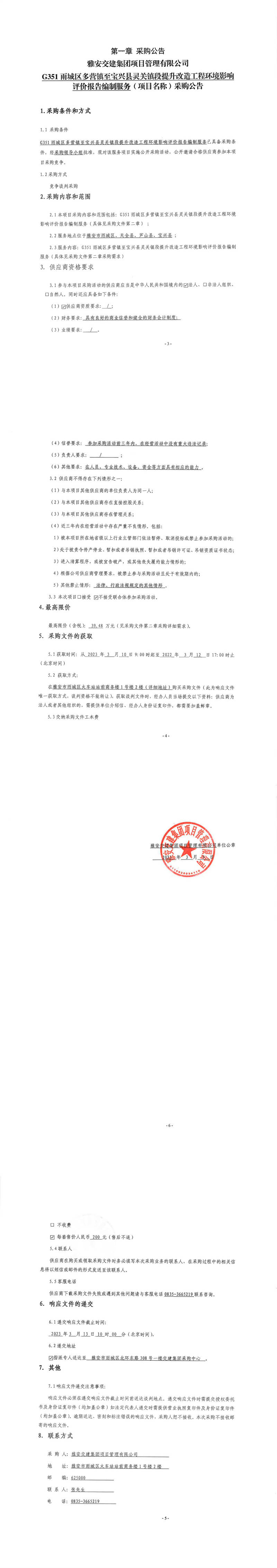 雅安交建集團(tuán)項目管理有限公司G351雨城區(qū)多營鎮(zhèn)至寶興縣靈關(guān)鎮(zhèn)段提升改造工程環(huán)境影響評價報告編制服務(wù)(項目名稱)采購公告