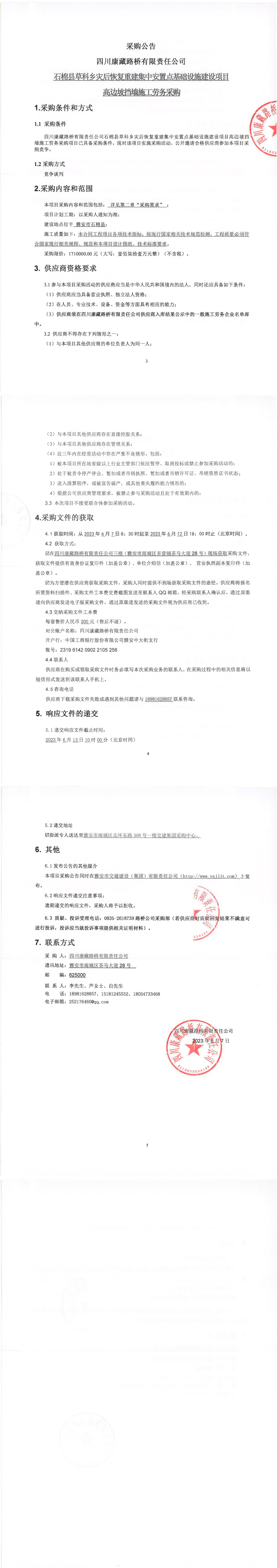 四川康藏路橋有限責(zé)任公司石棉縣草科鄉(xiāng)災(zāi)后恢復(fù)重建集中安置點基礎(chǔ)設(shè)施建設(shè)項目高邊坡?lián)鯄κ┕趧?wù)采購