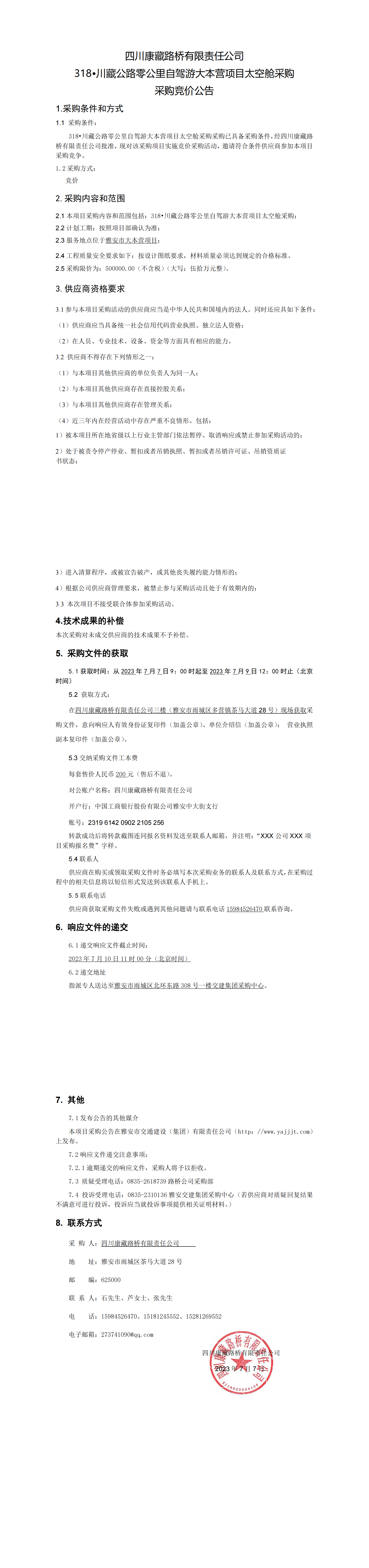 四川康藏路橋有限責(zé)任公司318·川藏公路零公里自駕游大本營(yíng)項(xiàng)目太空艙采購(gòu)競(jìng)價(jià)公告
