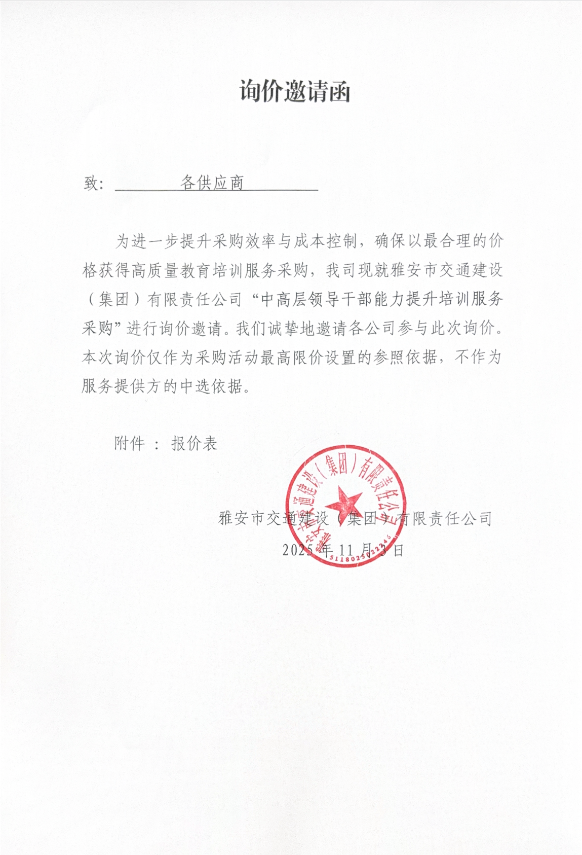 關(guān)于雅安交建集團(tuán)下屬子公司主要負(fù)責(zé)人經(jīng)濟(jì)責(zé)任審計(jì)項(xiàng)目限價(jià)的詢價(jià)函