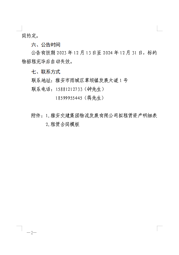 雅安交建集團物流發(fā)展有限公司關(guān)于房屋、場地、倉庫公開招租的公告附件1、2