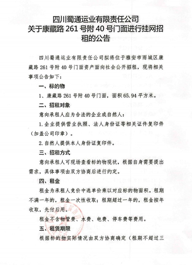 ËÄ´¨Êñͨß\(y¨´n)˜I(y¨¨)ÓÐÏÞØŸ(z¨¦)Èι«Ë¾ êP(gu¨¡n)ÓÚ¿µ²ØÂ·261Ì–(h¨¤o)¸½40Ì–(h¨¤o)éTÃæßM(j¨¬n)ÐÐ’ì¾W(w¨£ng)ÕÐ×âµÄ¹«¸æ
