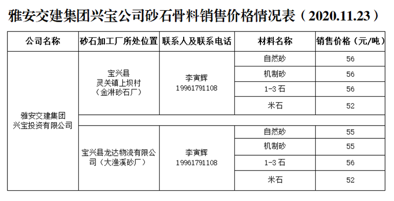 ÑŰ²½»½¨¼¯ˆF(tu¨¢n)ÅdŒš¹«Ë¾É°Ê¯¹ÇÁÏäN(xi¨¡o)ÊÛƒr(ji¨¤)¸ñÇé›r±í£¨2020.11.23£©