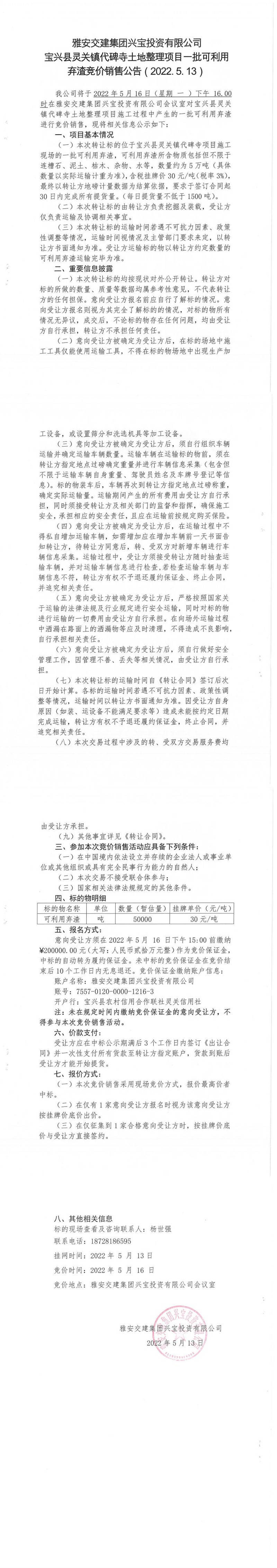 ÑŰ²½»½¨¼¯ˆFÅdŒšÍ¶ÙYÓÐÏÞ¹«Ë¾ŒšÅd¿hì`êPæ‚(zh¨¨n)´ú±®ËÂÍÁµØÕûÀíí—ĿһÅú¿ÉÀûÓ׉Ôü¾¹ƒräNÊÛ¹«¸æ£¨2022.5.13£©