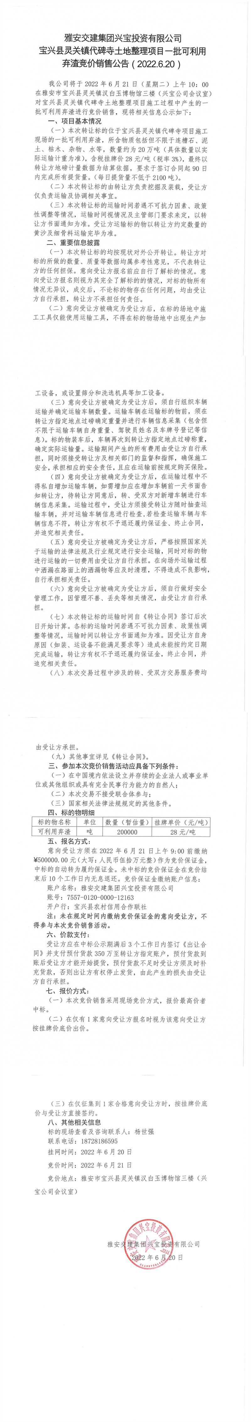 ÑŰ²½»½¨¼¯ˆF(tu¨¢n)ÅdŒšÍ¶ÙYÓÐÏÞ¹«Ë¾ŒšÅd¿hì`êP(gu¨¡n)æ‚(zh¨¨n)´ú±®ËÂÍÁµØÕûÀíí—(xi¨¤ng)Ä¿-Åú¿ÉÀûÓà —‰Ôü¸‚(j¨¬ng)ƒr(ji¨¤)äNÊÛ¹«¸æ( 2022.6.20 )